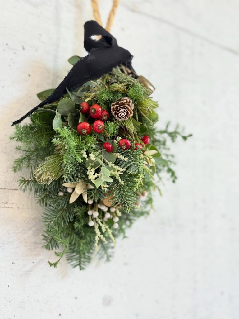 自転車をこいでいると、クリスマスのドア飾りが飾ってあるお宅の前を通りながら。。。