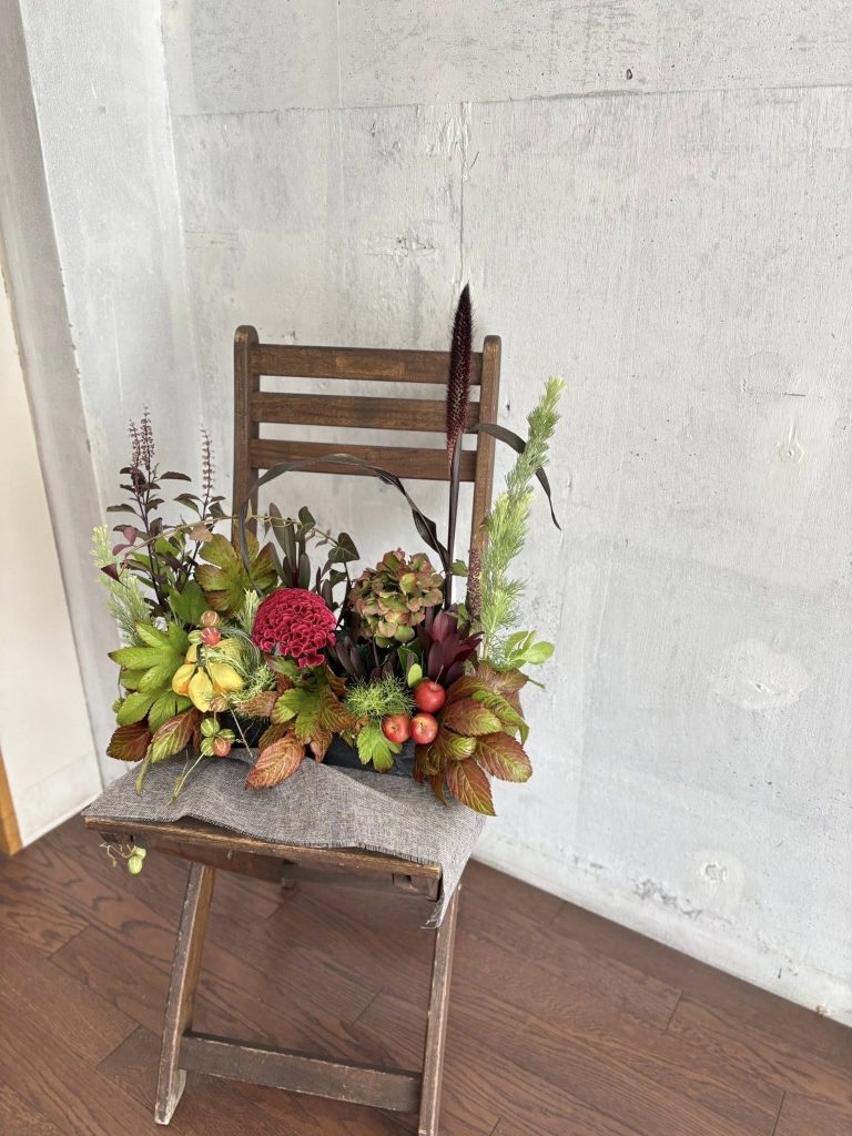 紅葉とともに秋のアレンジを生けました