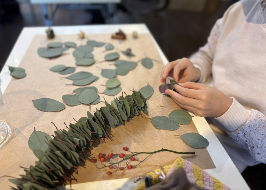 仕上げの、木の実とリボンも自分でチョイスして完了!