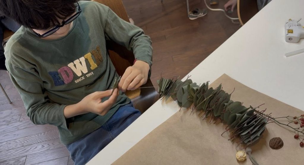 葉(なんと150枚以上!!)をワイヤーに通していく所作が職人さんのように決まっていて、カッコよかったなぁ