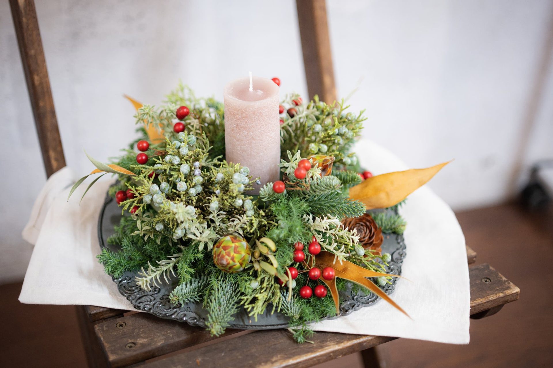 12月のスキルアップレッスン1日目 今年はプレートを使いました針葉樹のなかにモミ枝が加わるとふっくらと厚みのある印象に仕上がります テーブルの中央に置いてパーティーに彩りを添えるという想定どこにどう飾るのかはとても大切で […]